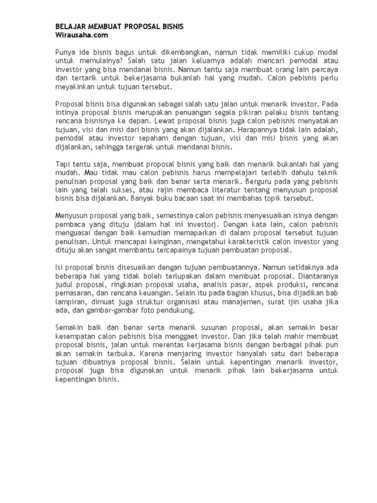 Contoh Proposal Pengajuan Modal Usaha Ke Investor Mojokbisnis Com